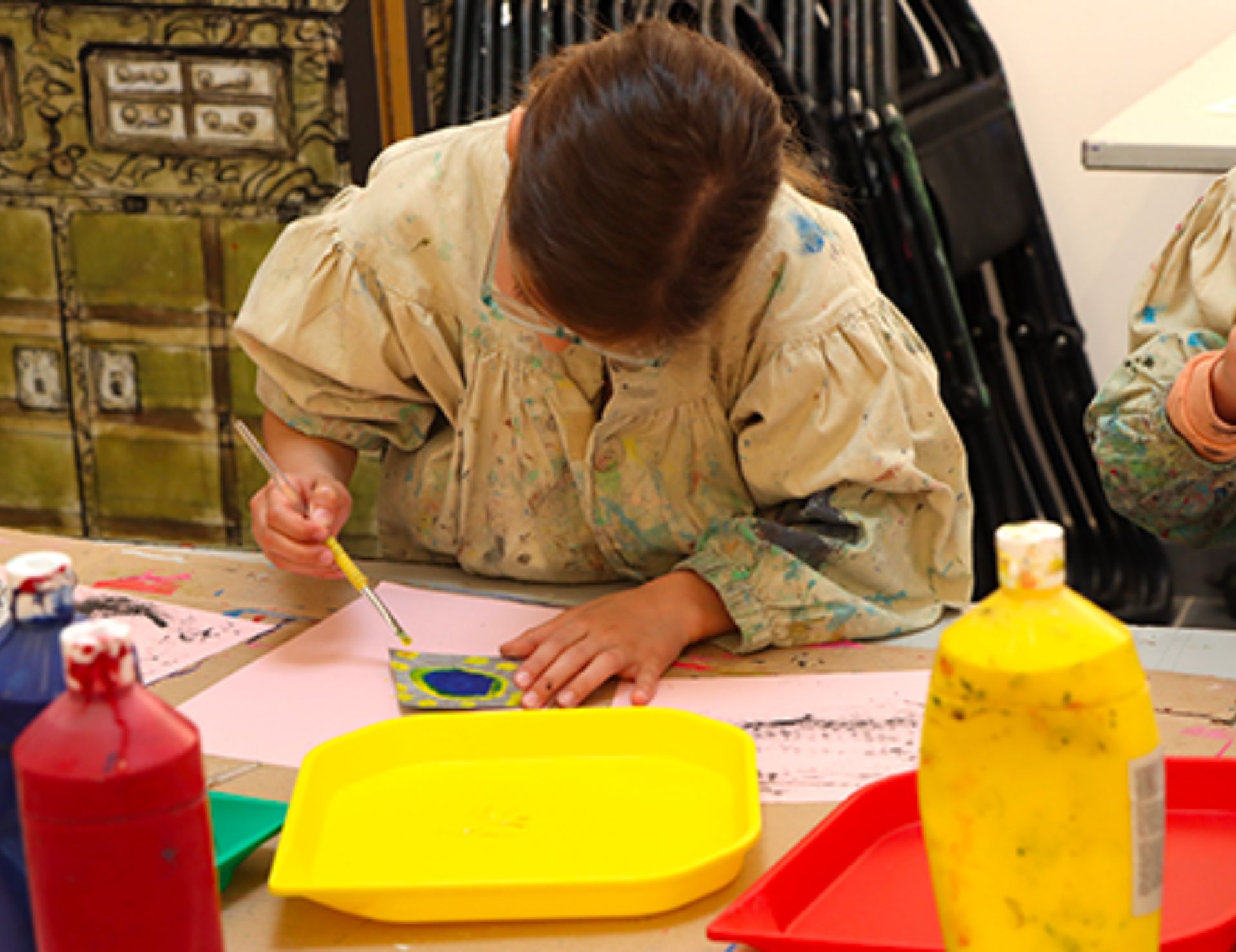 Cet atelier débute par la découverte de l’exposition en cours. Ensuite, à partir de leurs observations et des sensations éprouvées, les enfants font preuve à leur tour d’imagination en expérimentant en atelier, les différentes techniques d’art plastique grâce aux outils et aux matières mis à leur disposition : dessin, modelage, peinture, collage…